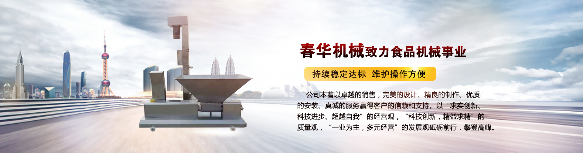 山东省春华机械科技有限公司坐落在素有恐龙之乡 之美誉,东邻青岛,南毗日照的现代化城市-山东诸城。公司经营范围是研发、加工、销售食品机械、环?;怠W怨境闪⒅两裼胫疃嗥笠到⒑献鞴叵?。公司本着以卓越的销售,完美的设计、精良的制作、优质的安装、真诚的服务赢得客户的信赖和支持。以...